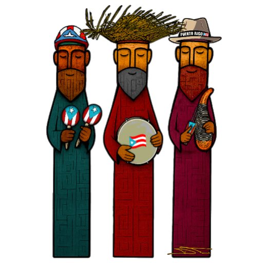 This vibrant boricua illustration reimagines the Three Kings through a Puerto Rican lens, blending folk art textures, geometric robes, and musical instruments that echo the island’s festive traditions. Each figure honors cultural pride with symbolic headwear and serene expressions, evoking the spirit of parrandas, community, and ancestral joy. A celebration of heritage, rhythm, and unity.
