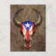 Puerto Rico Flag Bull Skull on Wood Effect Postcard