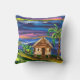 Puerto Rico jibaro house outdoor throw pillow printed with an orginal art by Boricua artist Aileen Rosario.