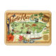 A vintage postcard map of Puerto Rico repurposed on a big magnet.