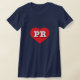This t-shirt features a vibrant red heart containing the bold, white, upper case letters PR, the official abbreviation for Puerto Rico, the isle of enchantment.