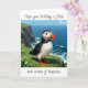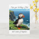 A sweet birthday card with an ocean of well wishes for a happy birthday! A cute illustration of a puffing sitting by the sea on an seaside dune or ledge.