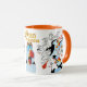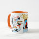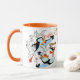Sketch Mug featuring the animated character, Puffin, from the classical Swan Princess film. Its rim and handle are orange which makes coloristic contrast to the white surface of the mug with black shapes of drawn characters placed on it and makes reference to parts of the character's coloristic. Includes the official Swan Princess logo. This design is also available on two sizes of plates and makes part of a bigger dining collection. Look for its other parts in the Swan Princess Zazzle store!