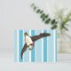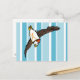 A funny cartoon illustration of a cute puffin wearing a knitted woolly hat. The puffins hat is stripy with a pom pom and tassels. The background is a trendy blue and white stripe pattern. If you would like any help customising this design please feel free to contact me using the ask this designer button, just below this text, or via my website www.tiki.graphics