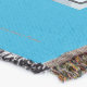 A quality printed throw has its advantages. This is a much finer weave throw than its loopier cousins, and though lighter, it is worth the investment for custom room accessorizing. The back is much prettier than the typical brown, and the fringe on the long sides very vivid, the selvage nicely done. Before photographing, I washed the throw in cold water, delicate, with a thicker woven throw the same size. On tumble dry low, this throw was dry in half the time as the other. This is a very practical quality if you use throws for furniture covers or to wrap up in frequently. The sleekness of the fabric makes it a great layer for accenting or protecting without the feeling of sitting on too much stuff. Perfect for napping or when you feel a light chill coming on. The color printing is beautiful and on this fabric, matched the design and color of my Photoshop image. This is an advantage for blending room fabrics and colors. The fringe on the short sides prints the colors from the design image and therefore varies from the side fringe. I streaked a white fractal line through the plaid pattern to give the illusion of weaving. This printed as crisp as an illusory thread, and put some white in the short side fringe, showing another advantage of print vs loomed- for artistic purposes, line lines, detail, and color integrity can be planned and preserved. My loomed throws have color limitations and more of a needlepoint texture. Print throws reproduce an exact image. The throw felt a little stiff straight out of the package, but this went away in the first delicate wash. Of course I searched the wash water for ink or bleeding and there was none.