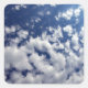 A bank of puffy white clouds breaks into small wispy pieces across the frame of the vertical photograph. The cloud cover is denser on the left and more sparse on the right, revealing a deep blue sky that is dark near the top of the photo and lighter near the bottom. Late afternoon sun highlights the right edges of the cumuli. It looks like torn apart cotton balls suspended in air.