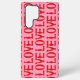 Puffy red LOVE phone case. Background colour and style can be customised.