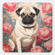 Pug And Peony Flowers William Morris Inspired Square Sticker