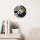 Wall Clock, 25.4 cm Round Black Wooden Frame