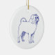 Classic design in blue and white. Blue line drawing of the pug breed on a white background.