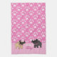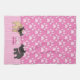 Pug Cuties Pink Stripes and Paws Tea Towel
