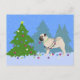 Pug decorating a Christmas Tree in the forest Holiday Postcard