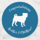 Include the big brother or sister fur baby in the celebration with this adorable pug dog baby shower design! Perfect for a puppy lover with a baby on the way. The pug is next to an adorable vintage carriage. The blue background makes it perfect for a baby boy on the way! Also a great design for puppy showers too!