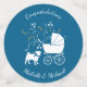 Include the big brother or sister fur baby in the celebration with this adorable pug dog baby shower design! Perfect for a puppy lover with a baby on the way. The pug is next to an adorable vintage carriage. The blue background makes it perfect for a baby boy!