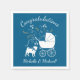 Include the big brother or sister fur baby in the celebration with this adorable pug dog baby shower design! Perfect for a puppy lover with a baby on the way. The pug is next to an adorable vintage carriage. The blue background makes it perfect for a baby boy!