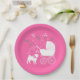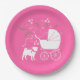 Pug Dog Baby Shower Girl Pink with Bow Paper Plate