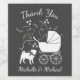 Include the big brother or sister fur baby in the celebration with this adorable pug dog baby shower design! Perfect for a puppy lover with a baby on the way. The pug is next to an adorable vintage carriage. The chalkboard grey background makes it perfect for a gender neutral or co-ed shower! Also a great design for puppy showers too!