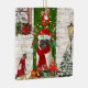 Pug Dog Christmas sitting outside decorated home with Christmas wreath, Christmas tree is a perfect Christmas gift idea for dog lovers.