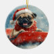 Pug Dog in Sledge Let it Snow Christmas Ceramic Tree Decoration