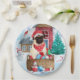 Pug Dog In snow Christmas Dog House Paper Plate
