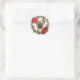 Pug Dog Poinsettia Holly Christmas Wreath Classic Round Sticker