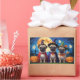 A playful Halloween scene featuring a mischievous little pup peeking out of a carved pumpkin, surrounded by spooky-fun fall vibes. With cheeky charm and autumn colours, it’s the perfect touch of humour for the season.