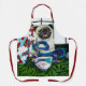 A cute pug dog and Chinese dragon are sitting in front of an empty rice bowl happily waiting to be fed lunch.