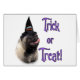 Will it be Tricks or Treats this Halloween? Our holiday design has your favourite dog breed, the fawn coated Pug, wearing a witch's hat. Add a little 'Hocus Pocus' to All Hallows' Eve this year!