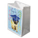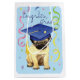 Congratulate your favourite graduate with a gift in a bag featuring a cute, little, happy Pug graduate wearing a mortarboard amid a flurry of confetti.