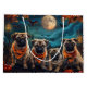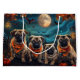 Unleash the spooky spirit with this eerie Halloween design featuring a pack of dogs under a dark, moonlit sky, surrounded by flying bats and glowing pumpkins. Perfect for those who love a touch of frightful fun with their furry friends!