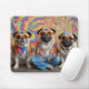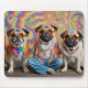 A mousepad featuring three pugs dressed like hippies with a psychedelic background.