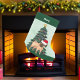 This beautiful pug has their head tilted inside of a cute Santa Claus hat. The adorable dog is sitting in front of a pretty Christmas tree decorated with colourful ornaments. Personalise this Christmas stocking for your pet in lovely red cursive above the wonderful drawing of my favourite doggy.