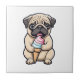 Pug licking ice cream tile