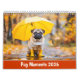 This calendar follows a delightful pug through the seasons: splashing in rain boots, dashing through autumn leaves, soaking in summer sunshine, and snuggling with a plush toy in winter.