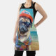 Pug on Beach, summer gift for dog lover Apron