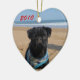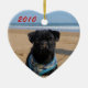 Original photograph of a black Pug puppy on the Beach with sand on his nose on a Heart Ornament.