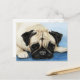 This postcard features a reproduction of my original watercolor painting of a pug.