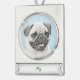Pug Painting - Cute Original Dog Art Silver Plated Banner Ornament