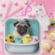 Join this playful Pug as they soak in the suds and unwind in the tub. The cute and quirky design is sure to bring a smile to your face and brighten up any room. Perfect for dog lovers, this charming illustration captures the joy and relaxation of bath time for your furry friend.