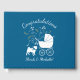 Include the big brother or sister fur baby in the celebration with this adorable pug dog baby shower design! Perfect for a puppy lover with a baby on the way. The pug is next to an adorable vintage carriage. The blue background makes it perfect for a baby boy!