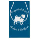 Include the big brother or sister fur baby in the celebration with this adorable pug dog baby shower design! Perfect for a puppy lover with a baby on the way. The pug is next to an adorable vintage carriage. The blue background makes it perfect for a baby boy!