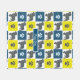 Pug Pet Dog & Paw Print Yellow Grid Silhouette Fleece Blanket