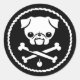 Cute cartoon pug & crossbones, one of which bones has a bite taken out of it. With rope circle border, t-shirts, cards, gifts.