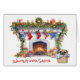 The front of this Christmas greeting card has an image of an adorable little Pug puppy lying on his blanket in a wicker basket in front of a decorated fireplace, expectantly waiting for Santa Claus. The red text at the bottom says "Waiting for Santa". The text is customizable, as is all the inside text, so you may make it say whatever you'd like. Cute! See more Pug images, along with dozens of other dog breed products, at Dog Village.