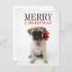 Pug Puppy with Christmas Bow Holiday Postcard