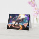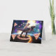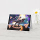 Pug riding dinosaur unicorn in space card