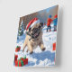 Pug Running in Snow with Christmas Hat Square Wall Clock