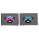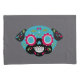 Pug Sugar Skulls Pillowcase Set has a purple pug sugar skull on one and blue pug sugar skull on the other both on grey. Both have a multi-colour pug sugar skull pattern on the back on a black background.