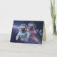 A dog Valentine's Day card featuring a Pug couple in a flying saucer going to the moon.