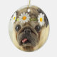 Pug with Daisy Crown Ceramic Tree Decoration